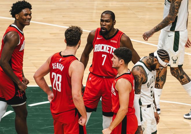 和哈登处于相同困境的,还有雄鹿的字母哥。雄鹿休赛期签下特纳,此外连续以远低于市场行情的价格,续约了小波特、波蒂斯、普林斯、小特伦特等即战力,看起来纸面实力还不错。而且为留住字母哥,把字母哥的二哥萨纳西斯和五弟亚里克斯也都签到队中。开赛前10战6胜,确实远超预期,但雄鹿最近输给火箭的一场比赛,赛后字母哥一句话很戳心:火箭是一支身材非常高大的球队,他们拥有表现最好的进攻篮板手,是一支非常出色的球队。对,字母哥看起来很羡慕火箭,因为他们本赛季距离总冠军更近。